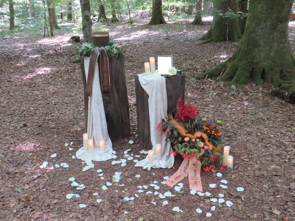 Die Beisetzung in einem Wald können Sie individuell gestalten, so wie Sie es möchten oder sich der Verstorbene zu Lebzeiten gewünscht hat. Ob still im kleinen Familen- und Freundeskreis, mit Musik oder in großem Rahmen. Sprechen Sie uns gerne an.