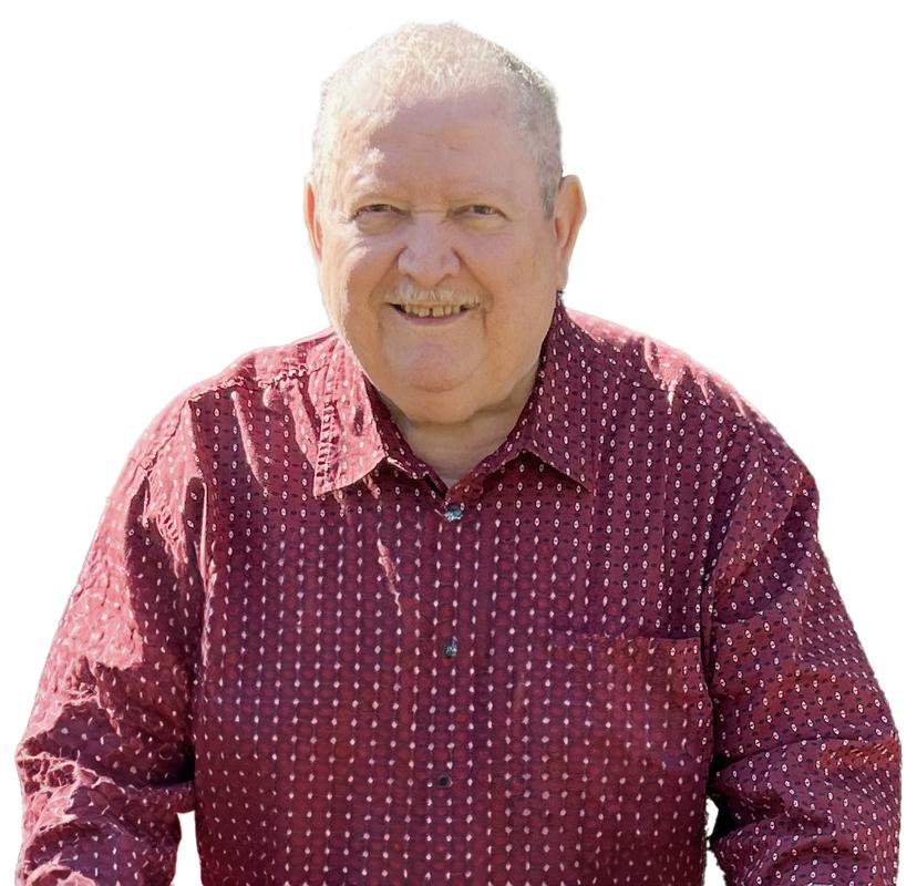 Lächelnder älterer Mann mit kurzen grauen Haaren, in rot-gestreiften Hemd, vor einem weißen Hintergrund.