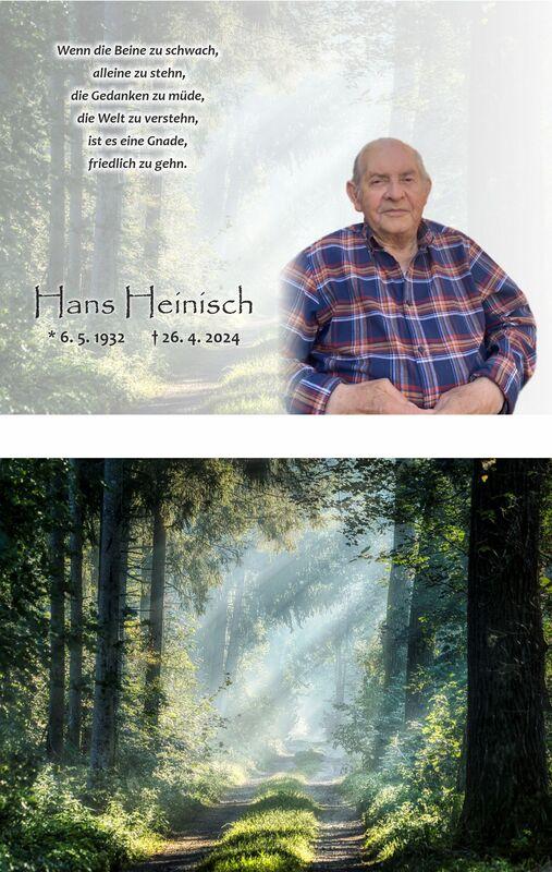Traueranzeige für Hans Heinisch mit Lebensdaten und Dankesworten, umgeben von einem Waldhintergrund.
