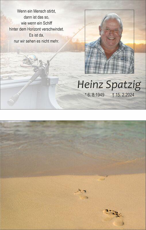 Traueranzeige für Heinz Spatzig mit seinem Foto, Geburts- und Sterbedatum sowie Informationen zur Urnenbeisetzung.