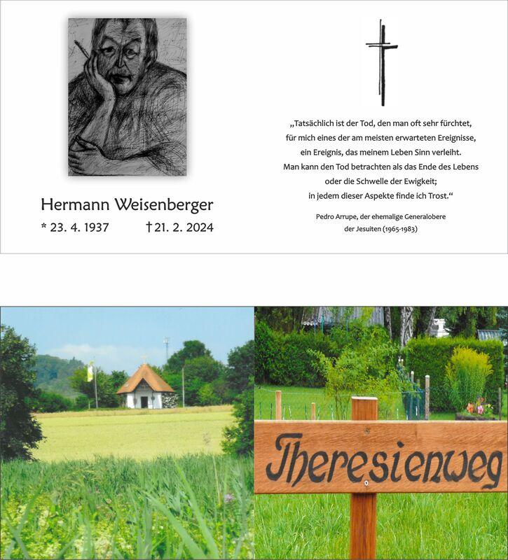 Todesanzeige für Hermann Weisenberger mit Geburts- und Sterbedatum sowie Trauergottesdienstinformationen.