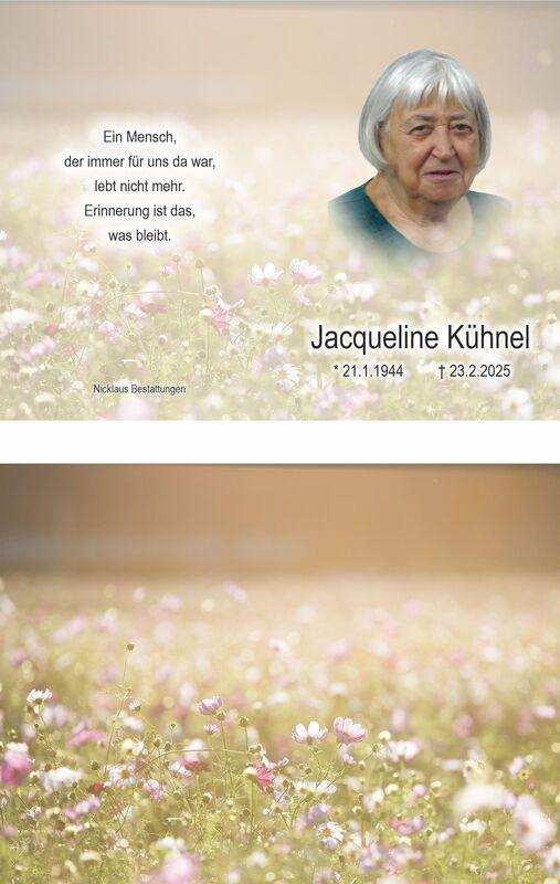 Traueranzeige für Jacqueline Kühnel mit Lebensdaten, Würdigung und Informationen zur Urnenbeisetzung.