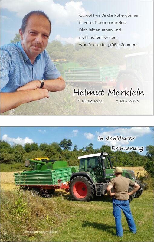 Traueranzeige für Helmut Merklei, mit Bild und persönlichen Daten in einem Weizenfeld-Hintergrund.