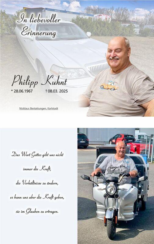 Traueranzeige für Philipp Kuhnt mit Geburts- und Sterbedaten sowie Informationen zum Trauergottesdienst.