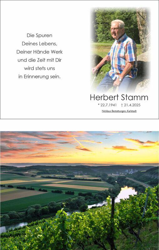 Traueranzeige für Herbert Stamm mit Lebensdaten, Dankesworten und Informationen zum Trauergottesdienst.