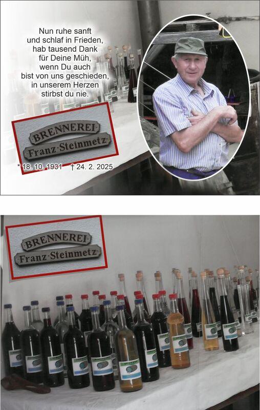 Traueranzeige mit einem Foto von Franz Steinmetz, Geburts- und Sterbedaten sowie Details zur Trauerfeier.