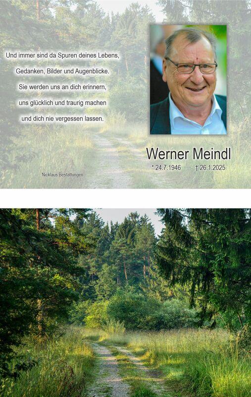 Traueranzeige für Werner Meindl mit Portraitfoto und Danksagung für Anteilnahme und Unterstützung.