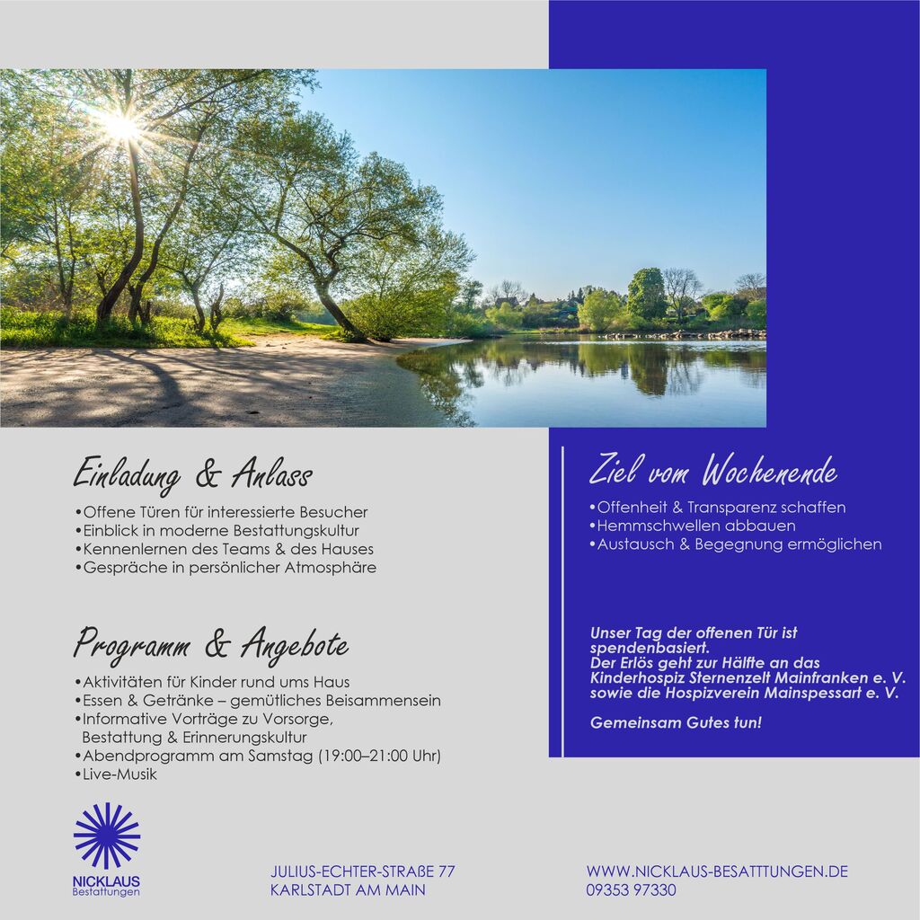 Am Tag der offenen Tür 2026 möchten wir Sie herzlich in unser Bestattungsinstitut einladen.