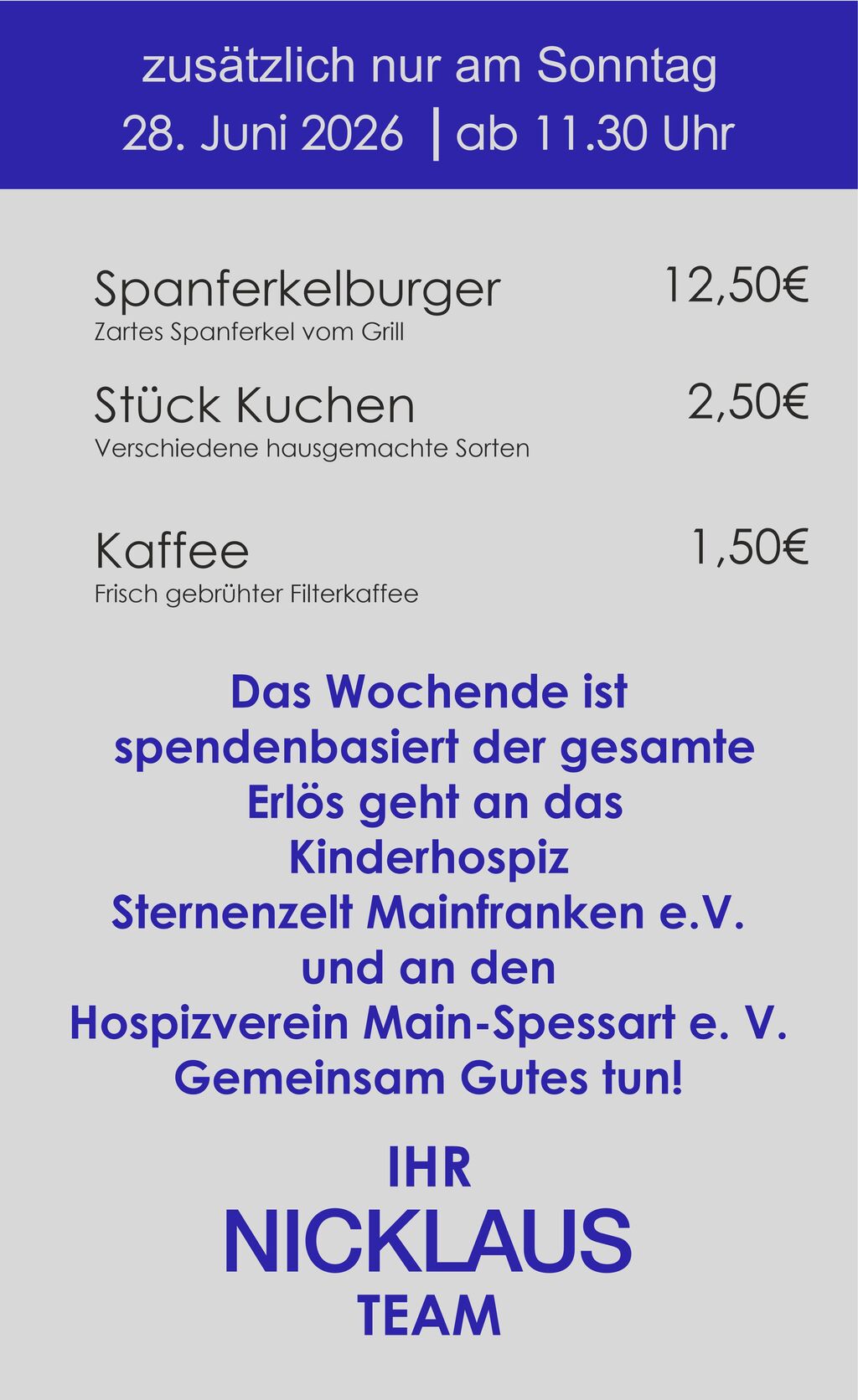 Die Einnahmen werden zu gleichen Teilen an zwei Einrichtungen weitergegeben, deren Arbeit uns sehr am Herzen liegt: