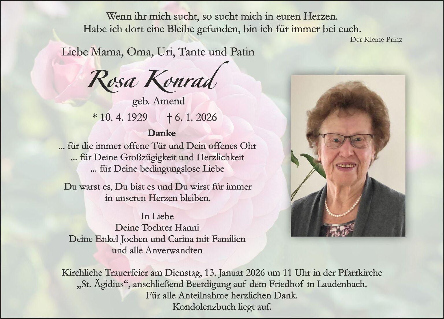 Mittwoch, 7.1.2026 um 15 Uhr Trauerfeier