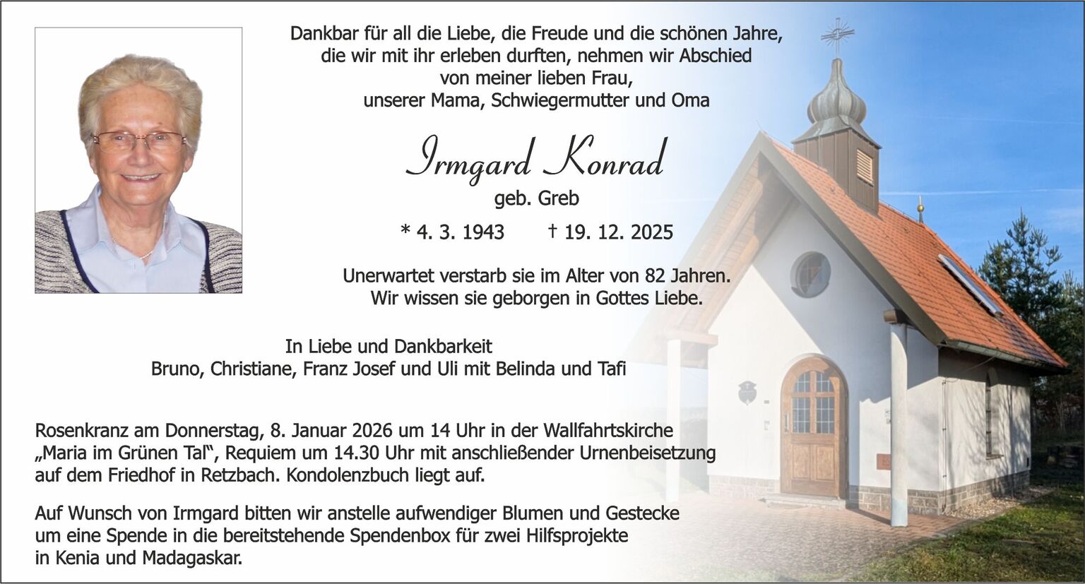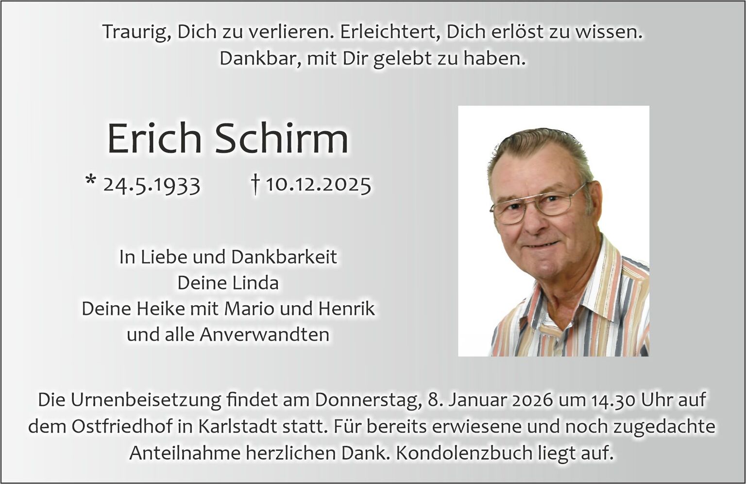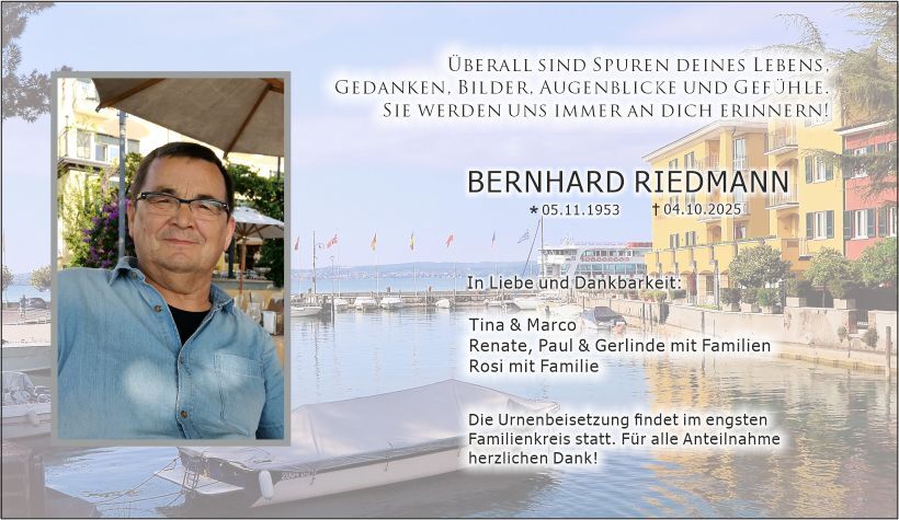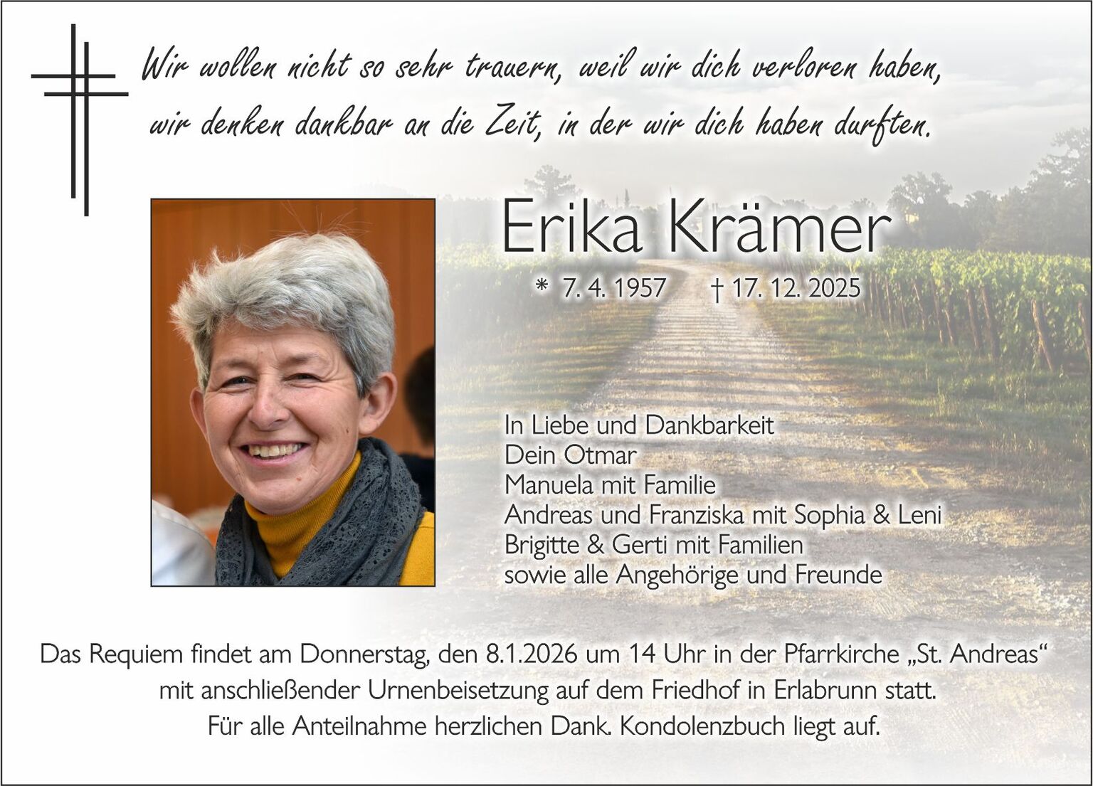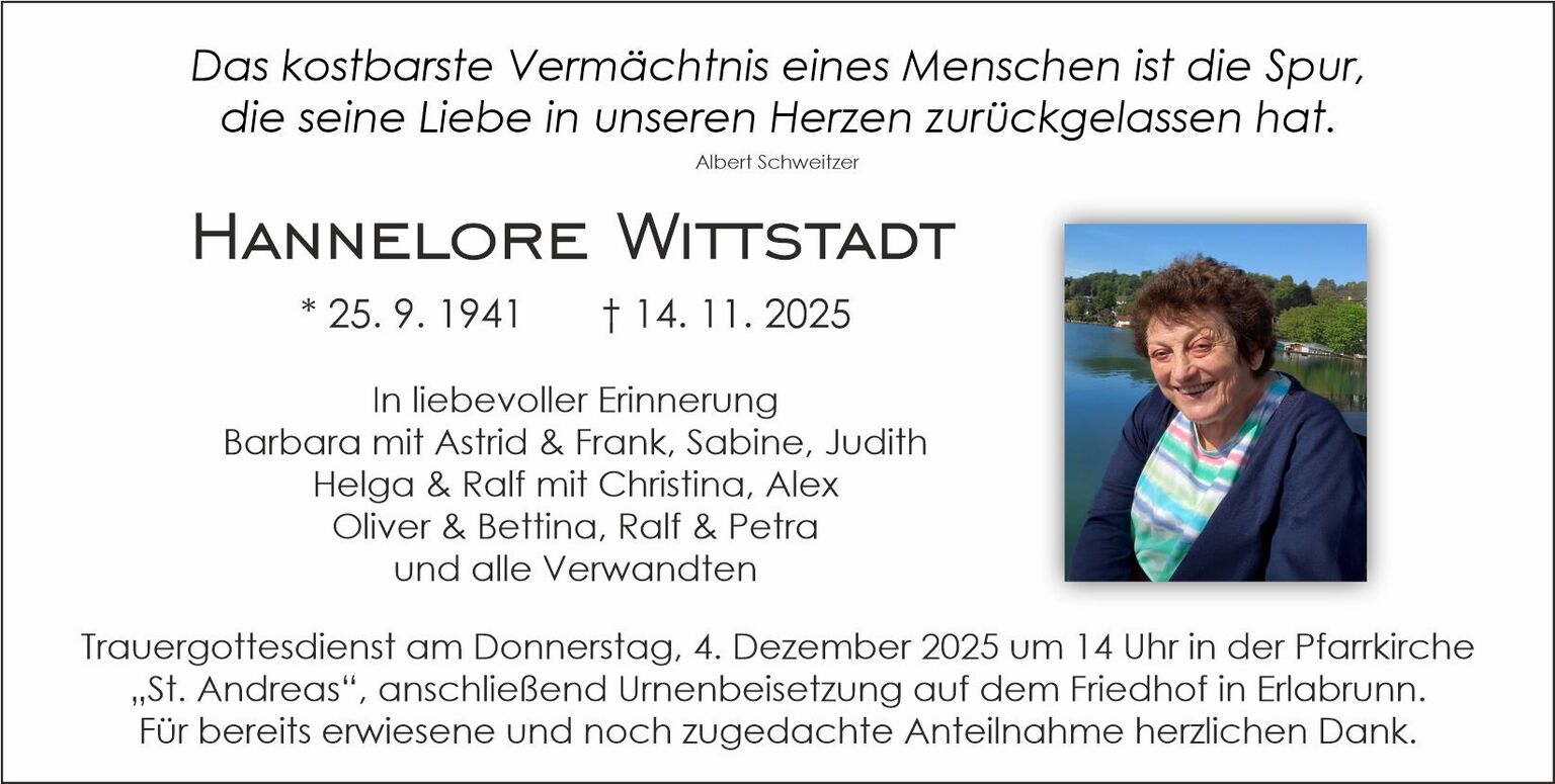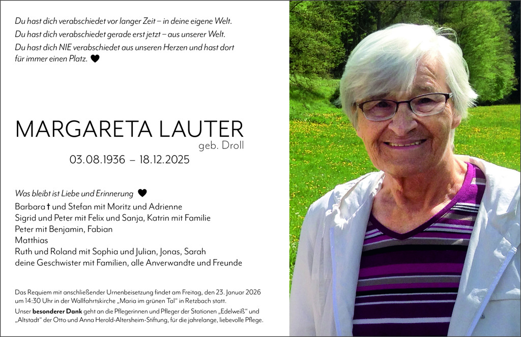 Mittwoch, 7.1.2026 um 15 Uhr Trauerfeier