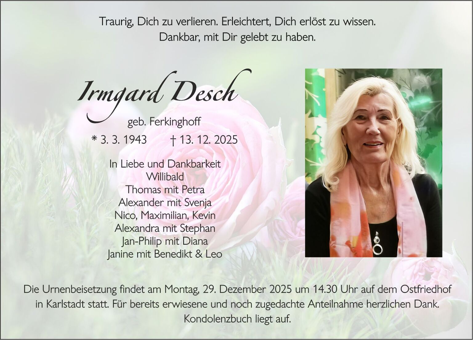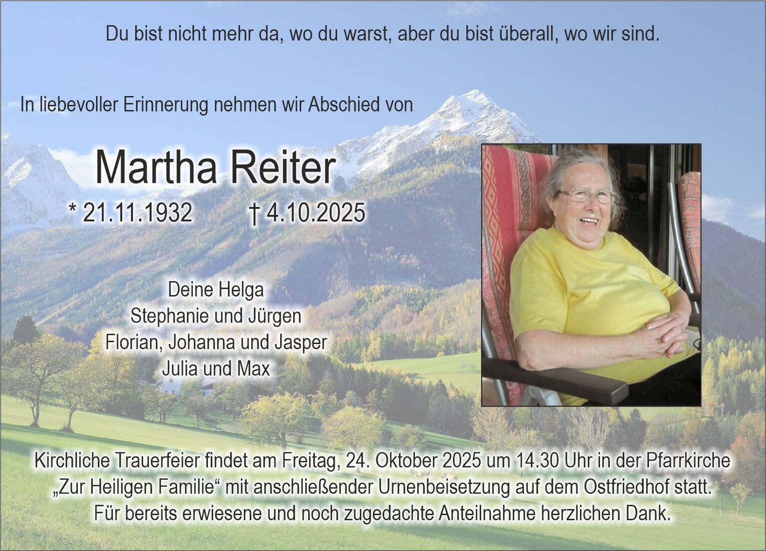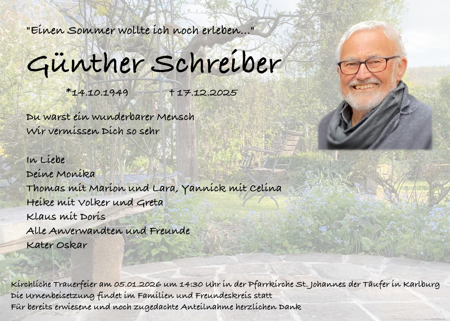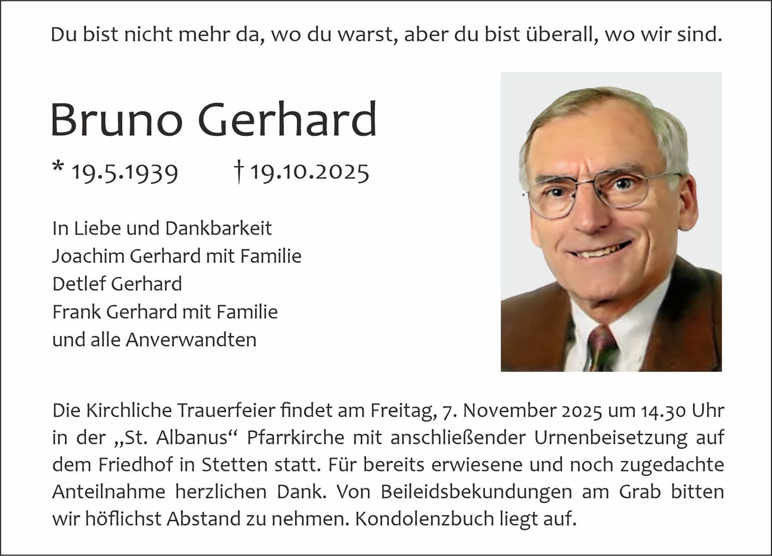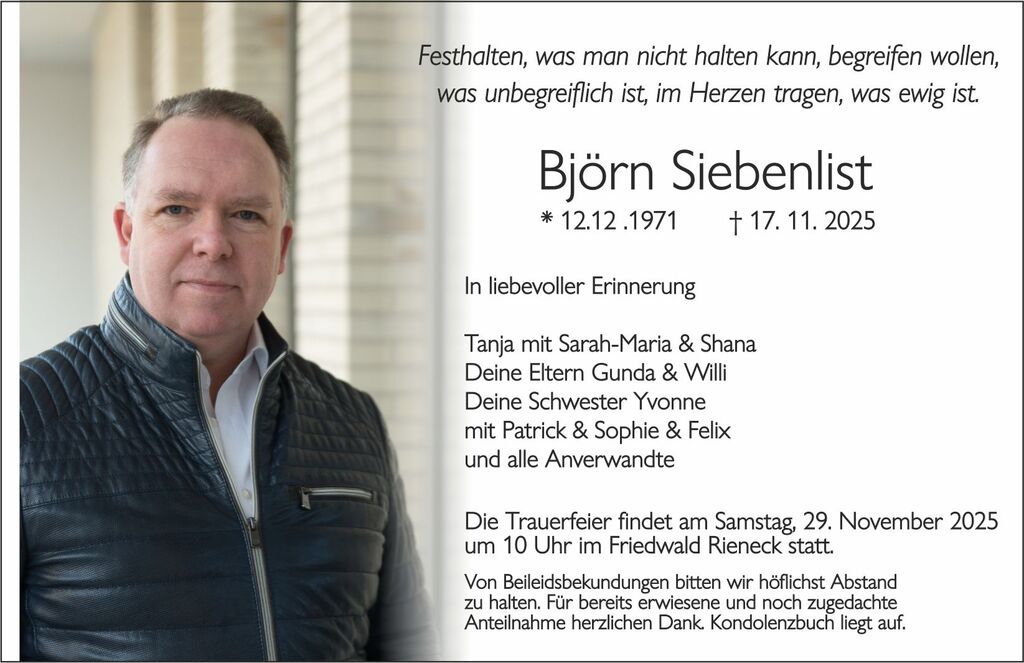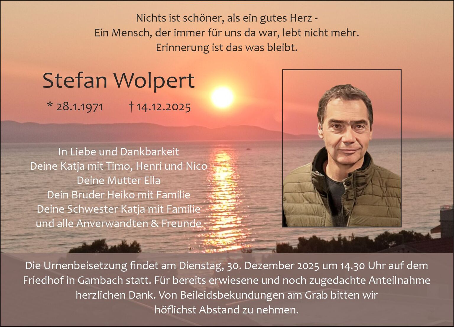 Mittwoch, 7.1.2026 um 15 Uhr Trauerfeier