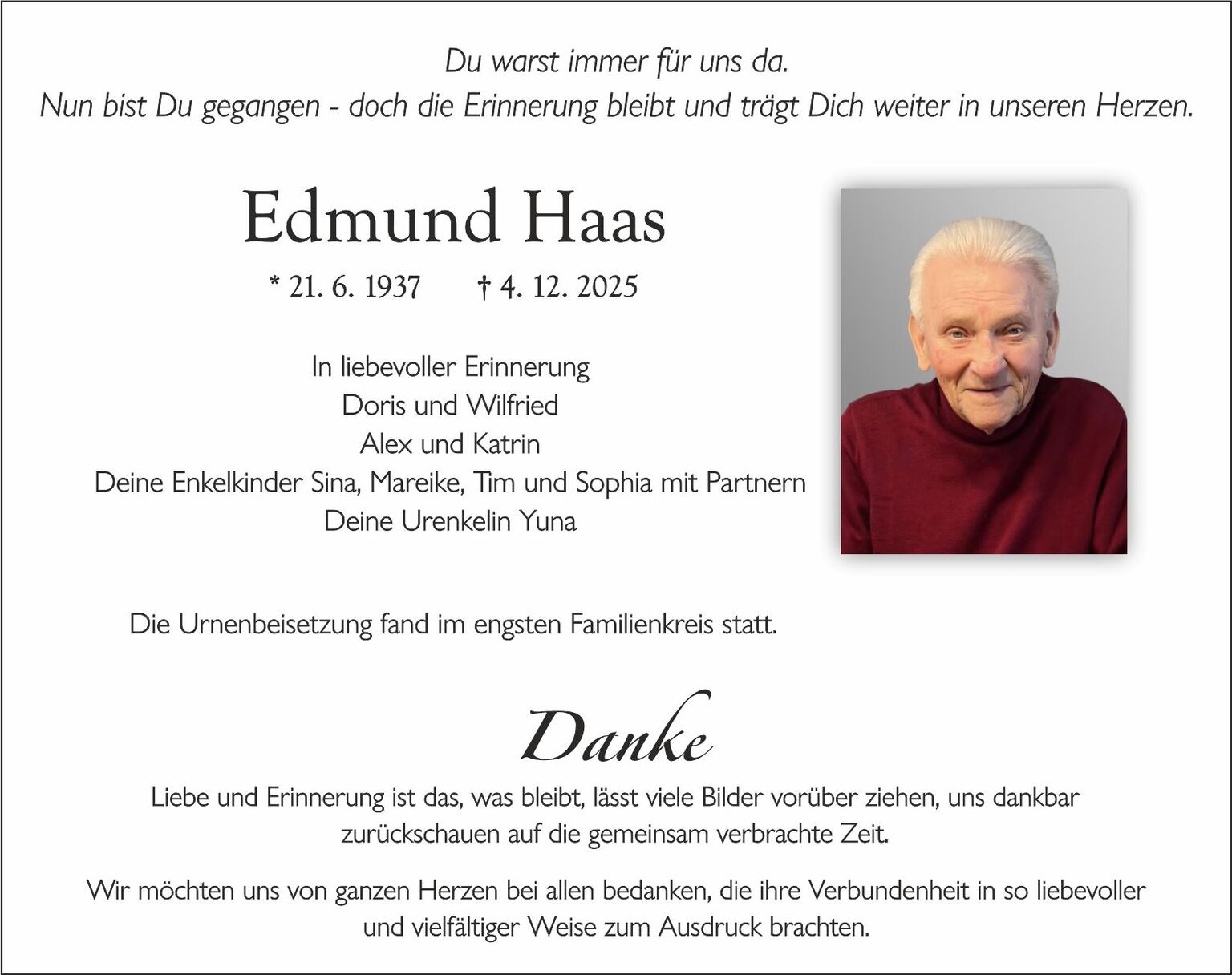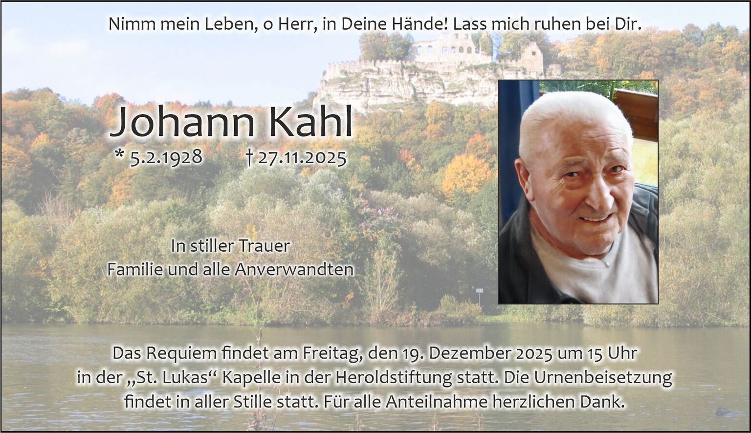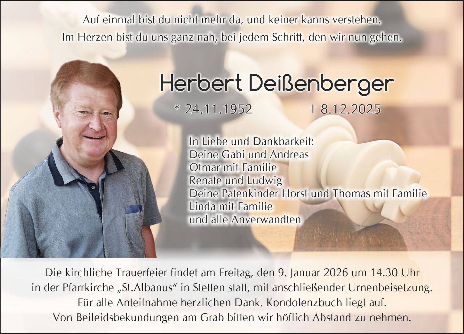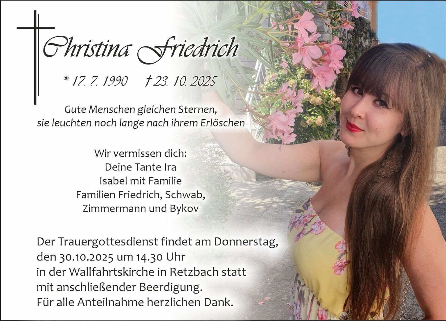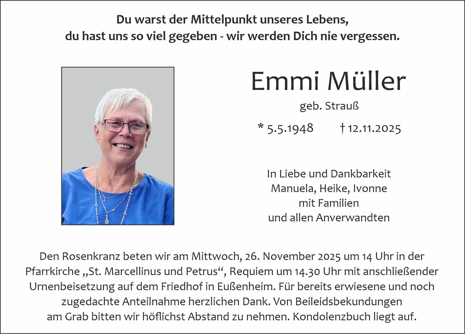 Mittwoch, 7.1.2026 um 15 Uhr Trauerfeier