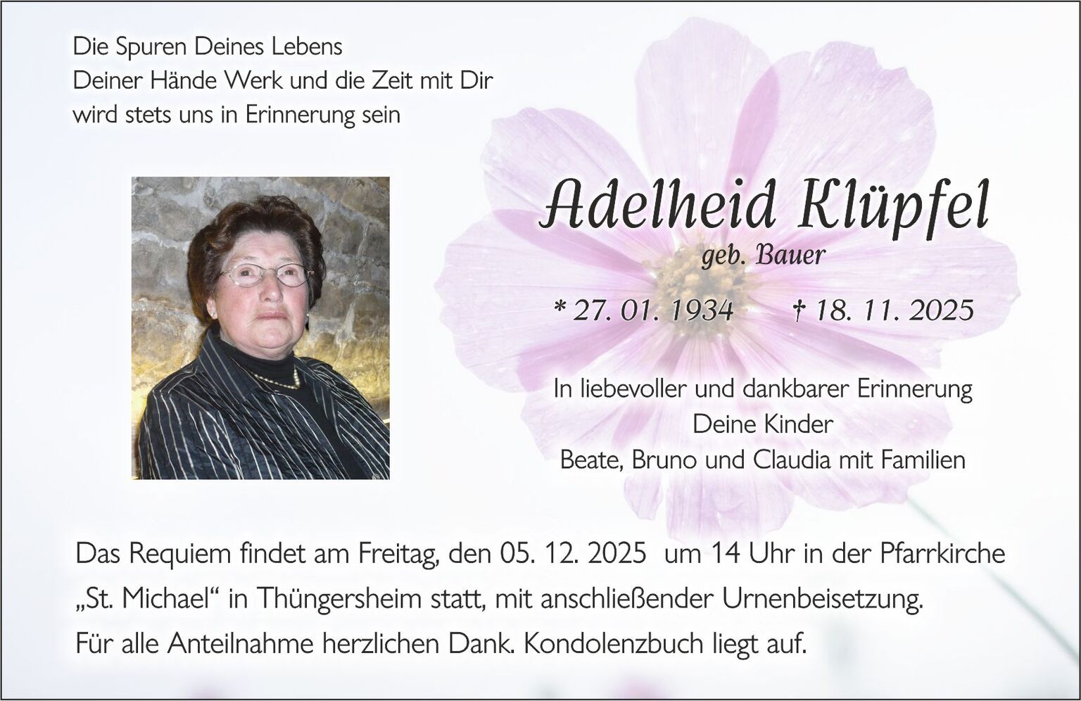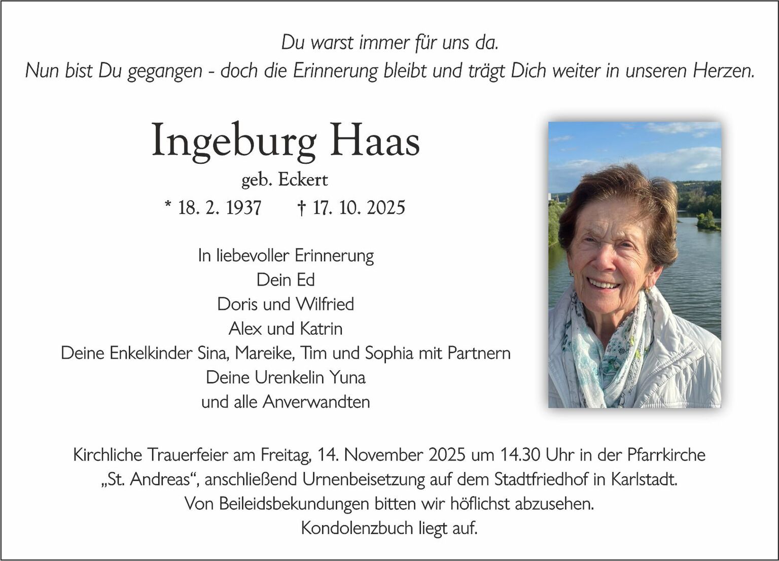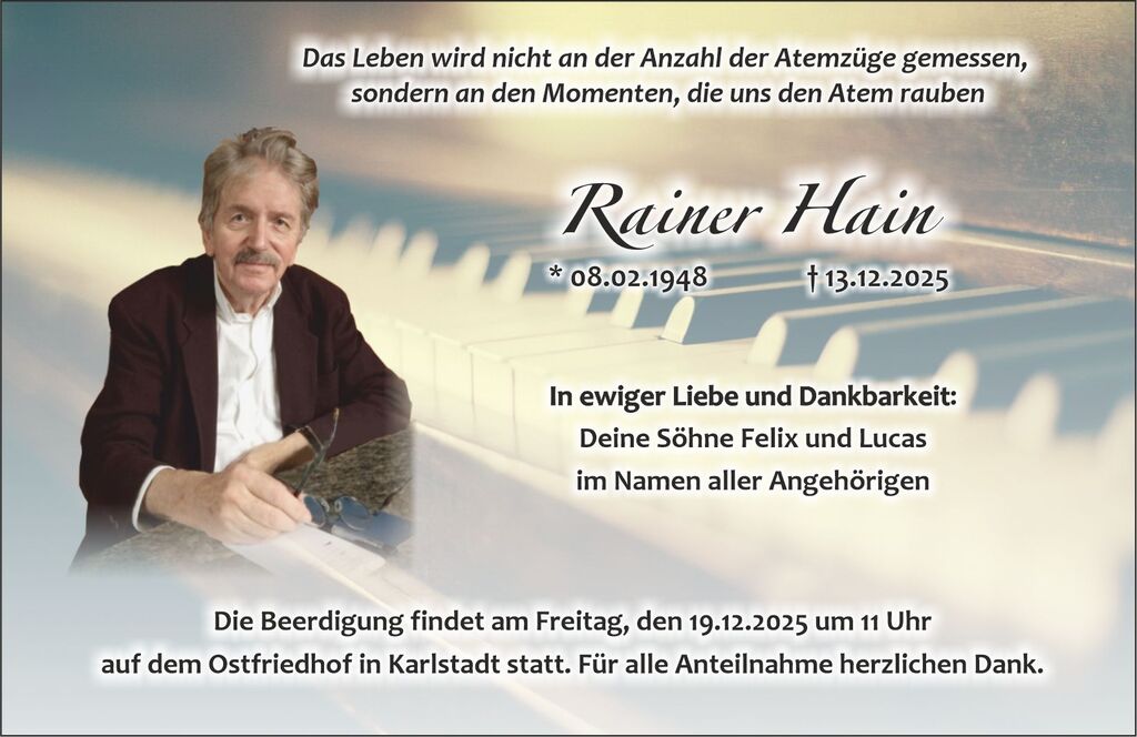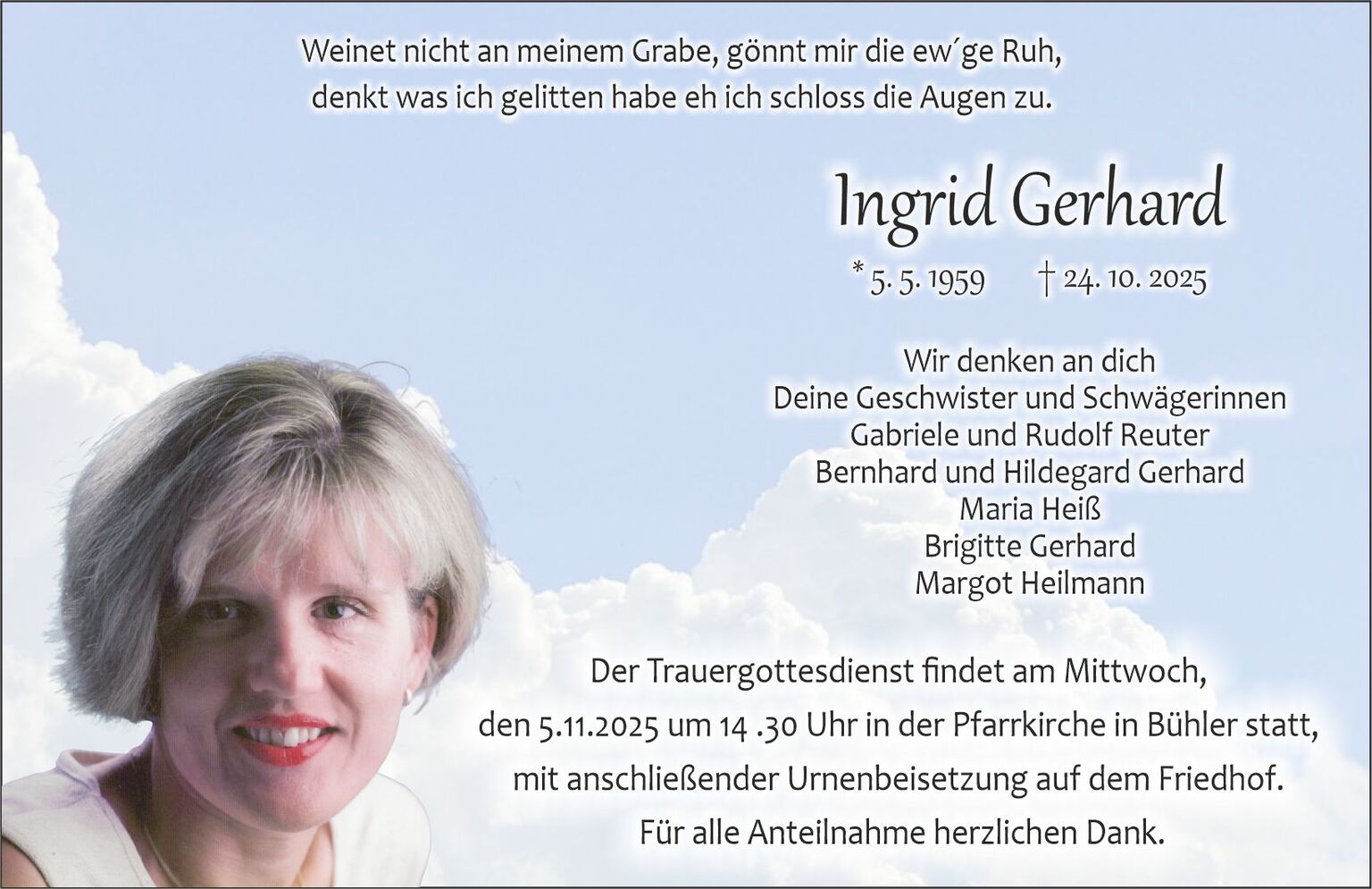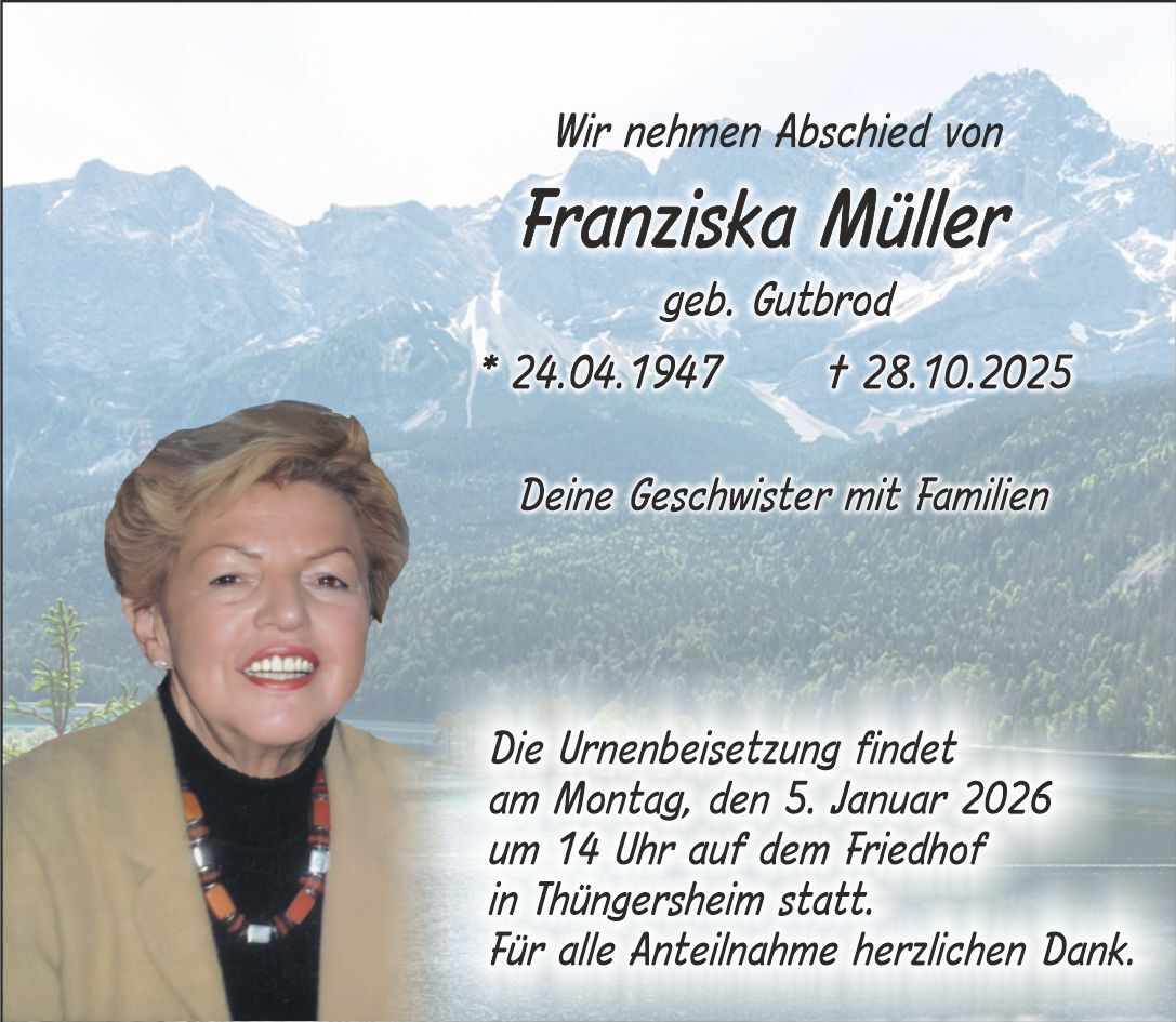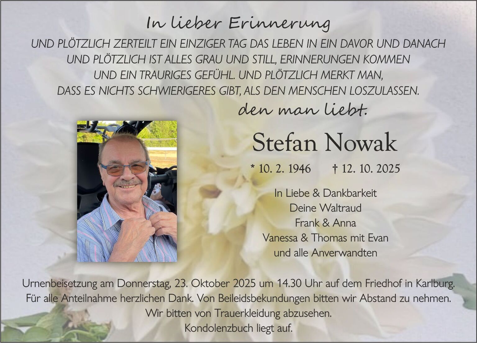 Mittwoch, 7.1.2026 um 15 Uhr Trauerfeier